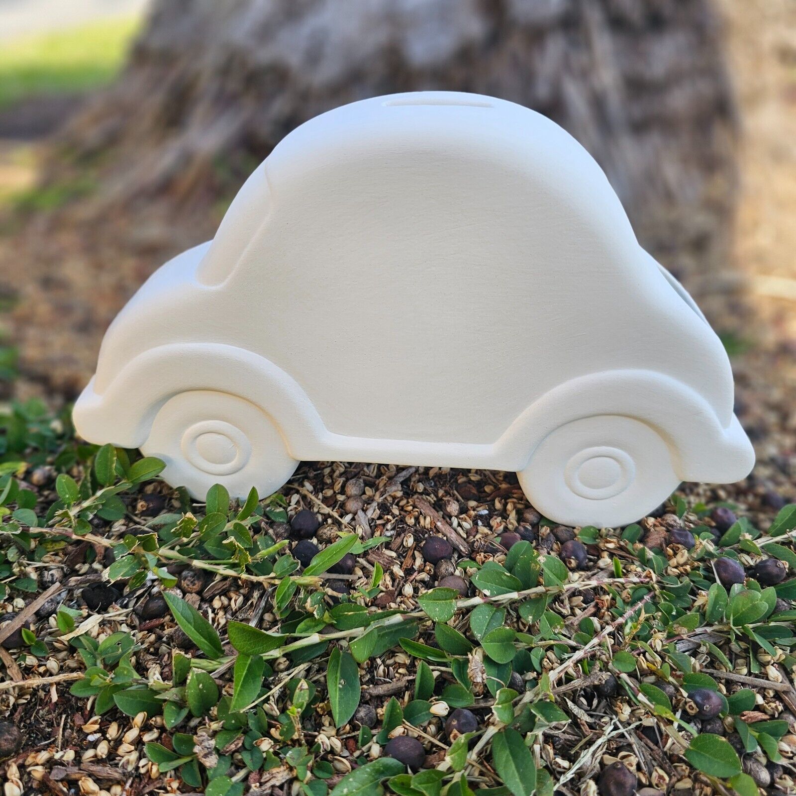 Rev up your creativity with our fantastic Big Car Coin Bank! Crafted from premium ceramic bisque and measuring an impressive 9" in size, this eye-catching coin bank captures the spirit of the open road. Ready to paint pottery ensures you can customize this bank with your unique artistic touch, whether you're a seasoned painter or just starting out. Perfect for saving up for your next adventure or as a stylish decor piece for car enthusiasts, this Big Car Coin Bank adds a touch of fun and functionality to any space. Don't miss the opportunity to fuel your savings in style – grab your Big Car Coin Bank today and let your creativity cruise! Comes with rubber stopper. Measurements 9 7/8 x 6 x 2 Inches Each Cone .04