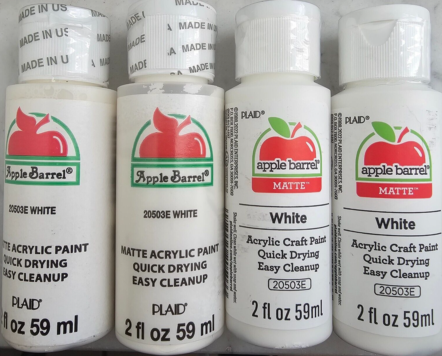 Four bottles of acrylic craft paint, 2 ounces each bottle for a total of 8 ounces. Brand new high-quality acrylic matte craft paint for projects and hobby enthusiasts. Great for many mediums. Great for models, paintings, ceramic bisque and much more!